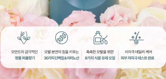 모발에 즉각적인 윤기와 부드러움을 선사하는 9가지 자연 유래 오일 성분도 주목할 만합니다. 호호바 씨 오일, 아르간 오일, 마카다미아씨 오일 등이 함유되어 있어, 샴푸 후에도 린스 없이 촉촉하고 부드러운 마무리감을 경험하실 수 있습니다. 건조하고 거친 모발에 충분한 영양을 공급하여 건강한 윤기를 부여합니다. 이를 통해 푸석함 없이 부드럽고 윤기 나는 모발로 가꿀 수 있습니다.