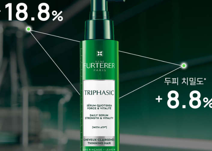이런 고민을 해결해줄 제품을 찾다가 만난 것이 바로 르네휘테르 트리파직 안티에이징 두피세럼인데요. 처음에는 스프레이 타입 세럼이 얼마나 효과적일까 의문이 들었지만, 이 제품이 20년 연속 프랑스 No.1으로 인정받은 두피 앰플의 핵심 성분을 기반으로 만들어졌다는 점에서 믿어보기로 했습니다. 그 핵심 성분은 ATP(다이소듐아데노신 트라이포스페이트) 입니다.