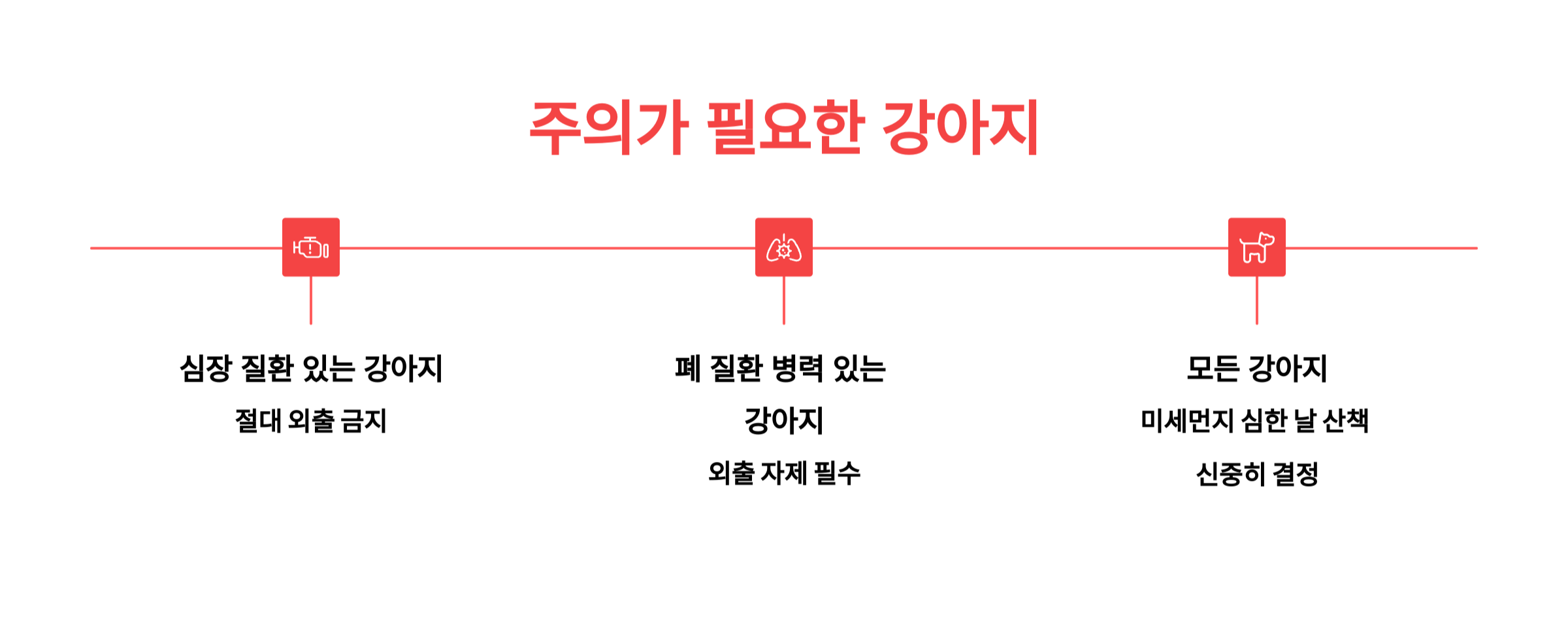 환절기나 미세먼지 농도가 높은 날에는 외출 자체가 부담스러울 수 있습니다. 특히 강아지는 사람보다 체구가 작고 호흡기 구조가 섬세하여 미세먼지에 더욱 취약할 수 있습니다.