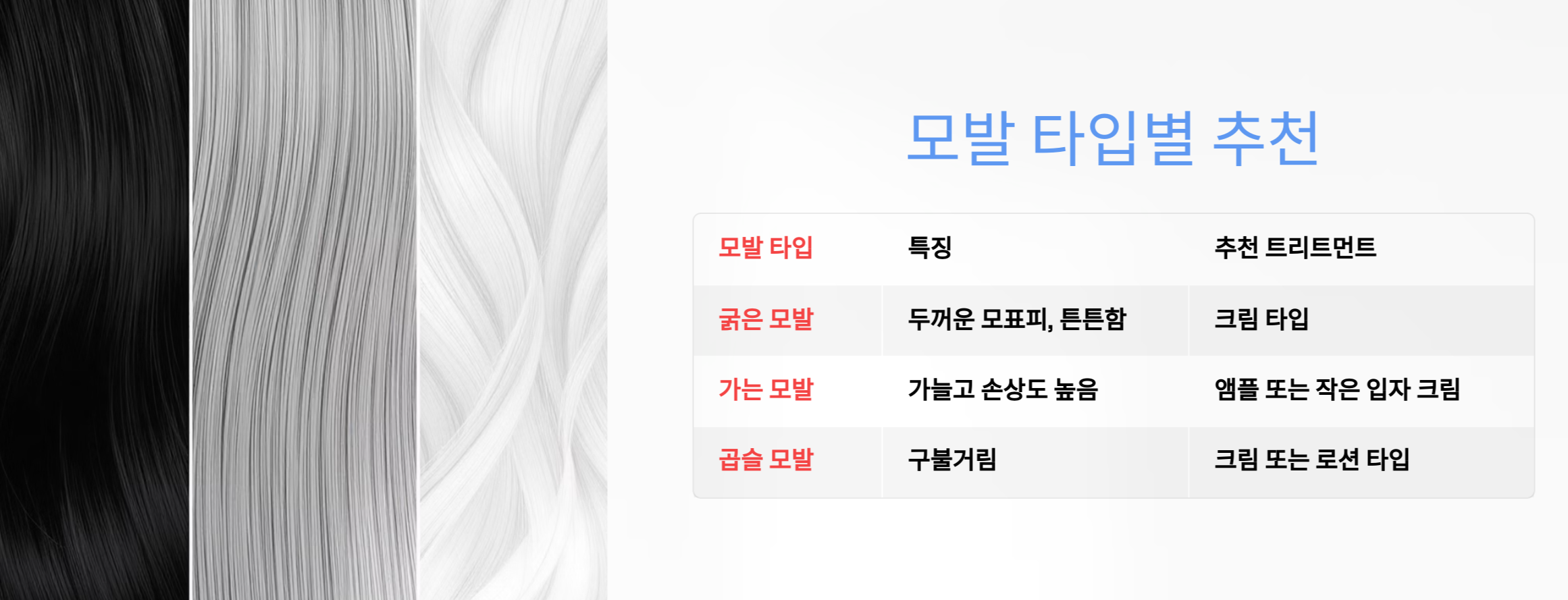 모발 타입 특징 추천 트리트먼트 종류 비교